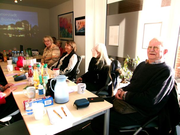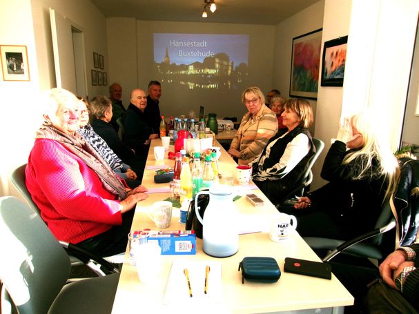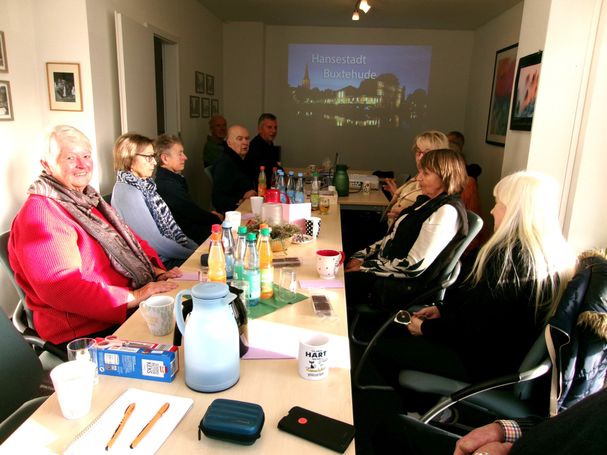 Am 22.07.2025 machten wir uns mit sechs Privatwagen auf den Weg nach Stade zur dortigen Geschäftsstelle von Miteinander-Füreinander. Empfangen wurden wir von Uschi Lukasek und Lydia Brüggemann, die uns leckeren Kaffee servierten. In den kleinen aber feinen Räumlichkeiten berichtete Uschi Lukasek stolz, dass der erst kürzlich gegründete Verein bereits 95 Mitglieder verzeichnen kann. Nach einem anschließend netten Plausch brachen wir wieder auf, aber statt wieder den Heimweg anzutreten blinken wir noch einmal links und stärkten uns am Lühe-Anleger bei einem Fischbrötchen.